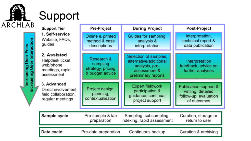 ArchLab is committed to service the archaeological community through a 3-tier support system, harnesseing all the joint knowledge from our specialists.